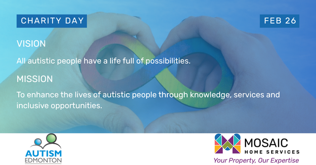 Every month, Mosaic Home Services supports a local organization that makes a difference in our communities. This February, we were proud to support Autism Edmonton, an Edmonton-based charity dedicated to enhancing the lives of autistic people through knowledge, services, and inclusive opportunities.