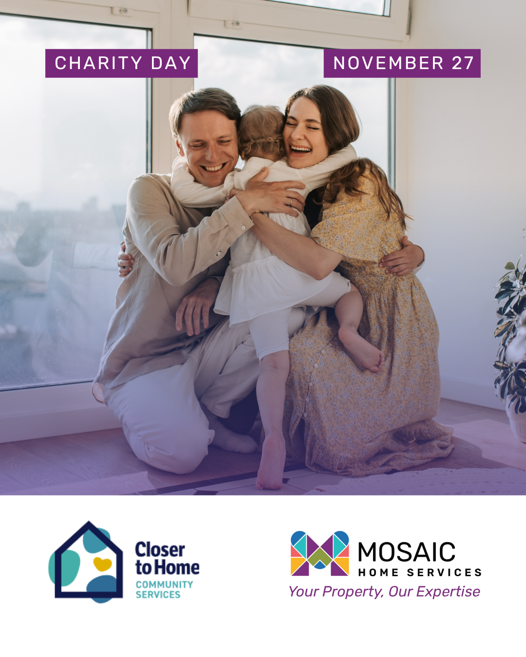 On Thursday, November 27, 2025, 5% of all sales and approved quotes from our family of brands will be donated directly to Closer to Home Community Services to support their family and youth programs.